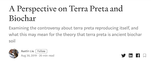 excerpt: “In the Amazon Basin, there exists thousands of hectares of cultivated plots consisting of unusually fertile black soil, termed Terra Preta de Indio — “dark earth of the Indians” — called Terra Preta for short. These soils are many hundreds if not thousands of years old, and have remained remarkably fertile in spite of the tropical rainfall, which accelerates the weathering of soil and the leaching of water soluble nutrients.”